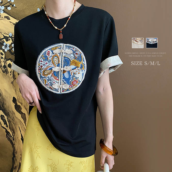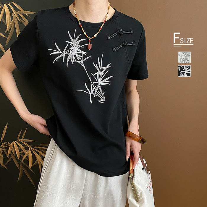 tシャツ レディース 夏 チャイナボタン tシャツ半袖 トップス Tシャツ カットソー 半袖 春夏 総柄 カジュアル トレンド おしゃれ 涼しい ゆったり ナチュラル
