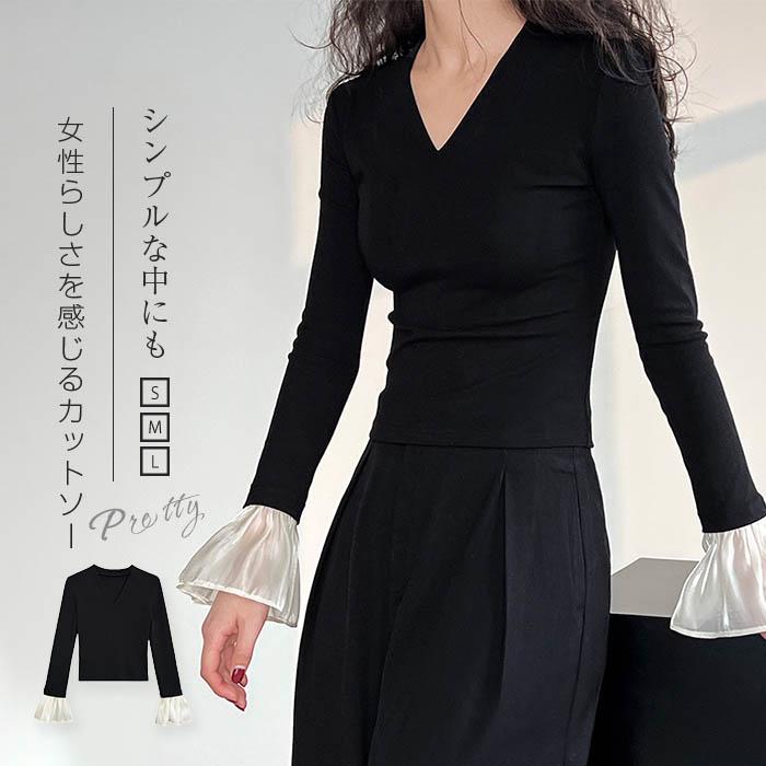 ニット レディース トップス セーター ライトニット 長袖 インナー vネック きれいめ 薄手 春 フレアスリーブ リブニット カットソー レディース トップス tシャツ セクシー 着痩せ