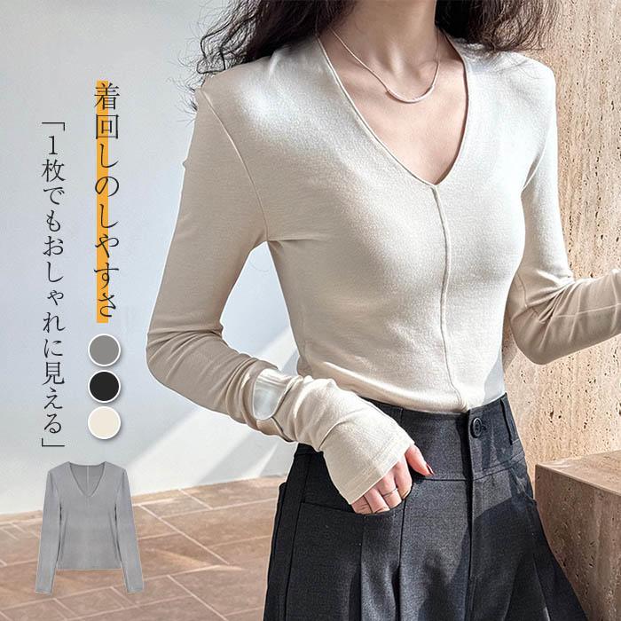 カットソー レディース 長袖 トップス tシャツ 無地 Vネック ストレッチ 薄手 着痩せ おしゃれ 重ね着 シンプル ベーシック 春 夏 秋 新作