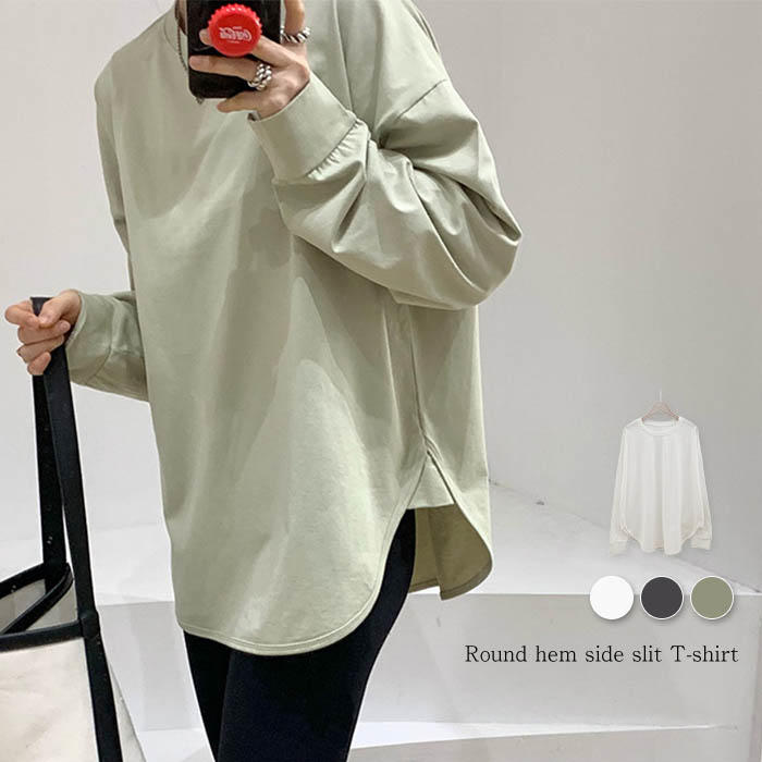 綿100% tシャツ レディース 長袖tシャツ カットソー プルオーバー クルーネック スリット ロンT 重ね着 カットソー 春 秋 ロングtシャツ オーバーサイズ 長袖 ベーシック 大人 上品