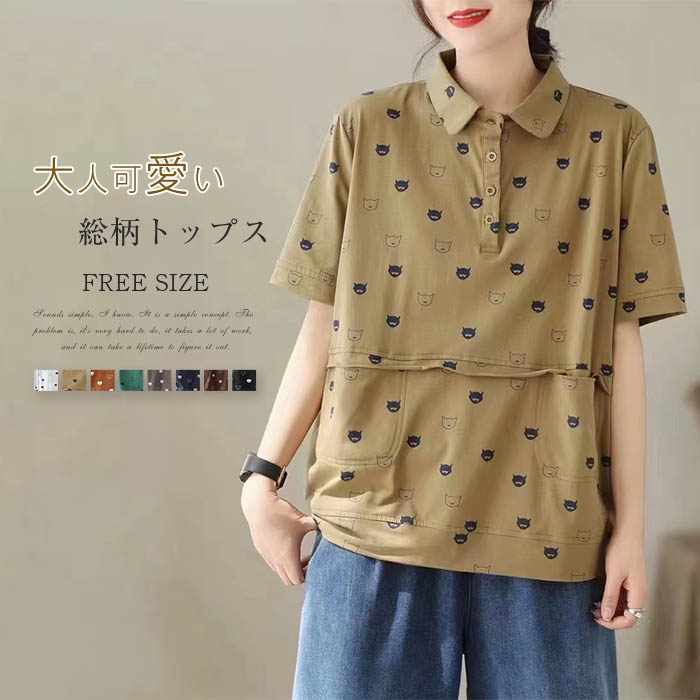 カットソー 夏 レディース 半袖 トップス ポロシャツ レディースシャツ 半袖シャツ 柄トップス レディーストップス シャツ お洒落 普段着 外出 お出かけ 普段使い 黒 30代 40代 50代