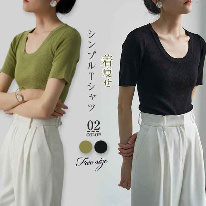 カットソー レディース Tシャツ トップス 半袖 レディースカットソー 半袖トップス 夏Tシャツ 半袖 春 秋 春夏秋 無地 カジュアル クルーネック Uネック 大人可愛い 20代 30代 40代 5