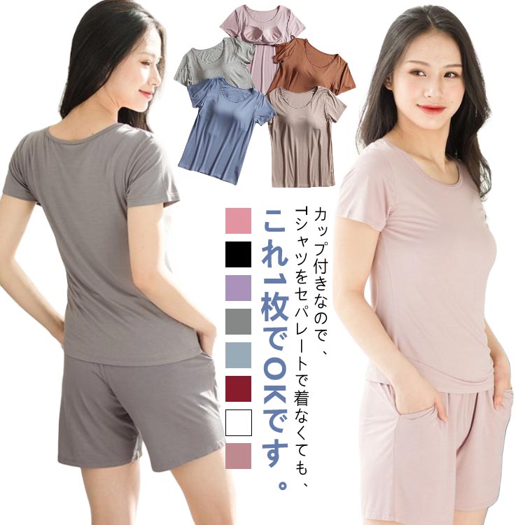 インナートップス 通気性 カップ付 Tシャツ 涼しい パット付き 爽やか 冷感 ブラ付きTシャツ インナートップス パジャマ 寝間着 寝巻き ランジェリー トップス 女性 夏用 快適 半袖