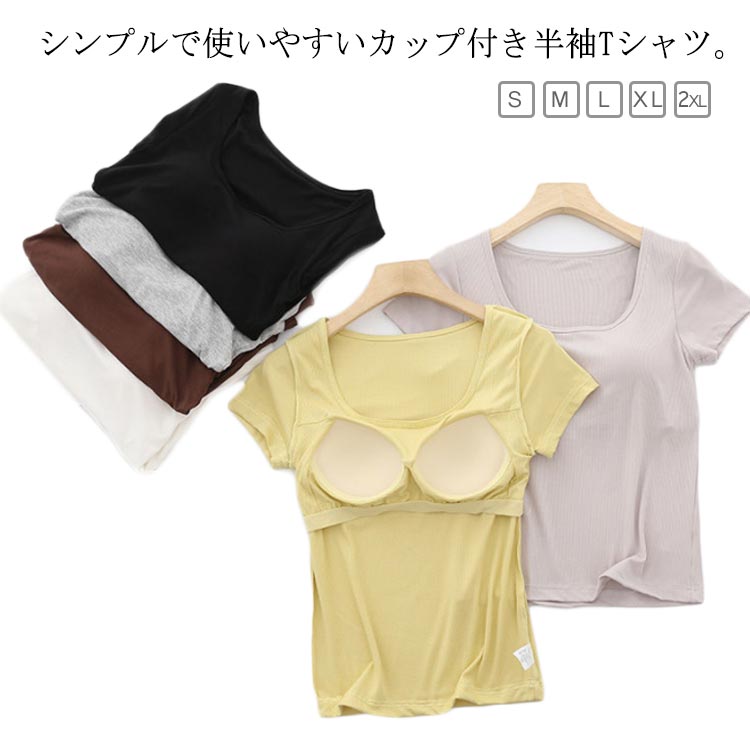 半袖 カップ付き Tシャツ レディース トップス カットソー 半袖インナーレディースファッション トップス Tシャツ カットソー