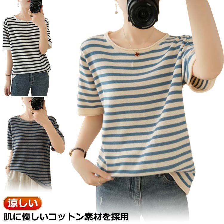 ボーダー柄 Tシャツ レディース 半袖Tシャツ 薄手 カットソー 春夏 涼しい 綿レディースファッション トップス Tシャツ カットソー