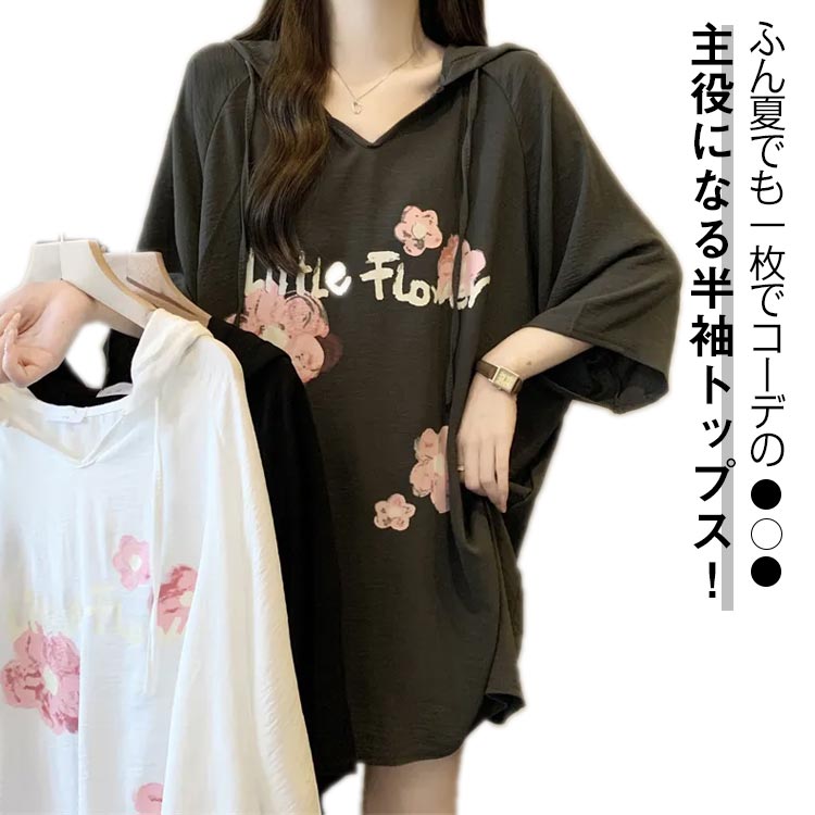 カットソー フード付き プルオーバー レディース 夏tシャツ プリント 半袖Tシャツレディースファッション トップス Tシャツ カットソー