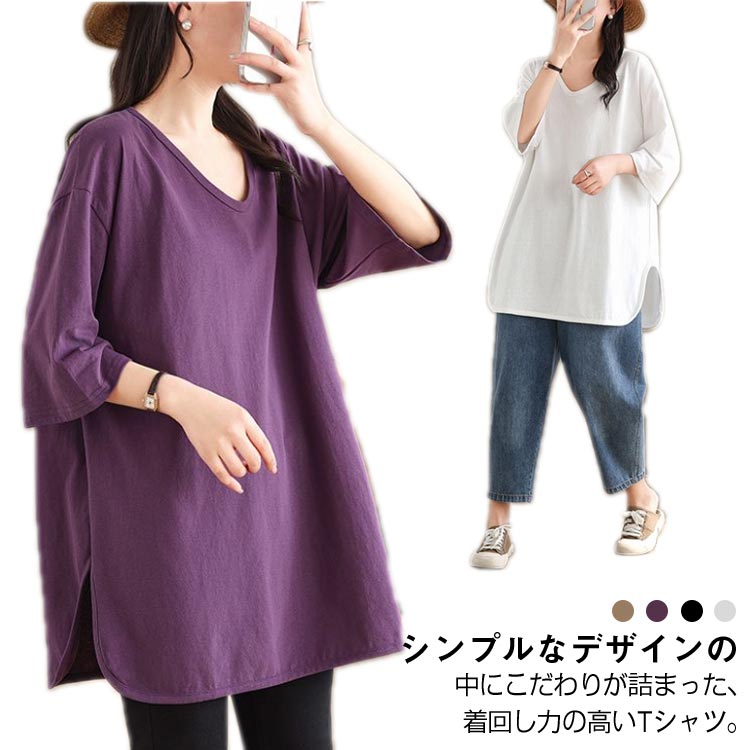 カットソー ゆったり サイドスリット レディース 春夏 五分袖 トップス 半袖Tシャツレディースファッション トップス Tシャツ カットソー