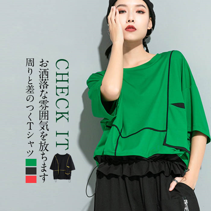 ドルマンスリーブtシャツ カットソー 半袖 レディース 春 夏 tシャツ レディース 半袖 大きいサイズ 切り替え tシャツ レディース バイカラー