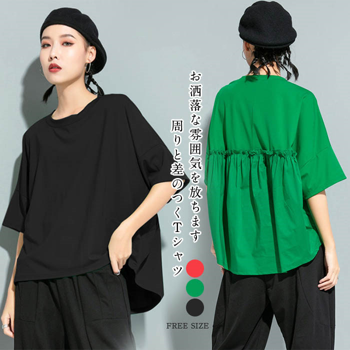 後ろ異素材tシャツ カットソー 半袖 レディース 春 夏 tシャツ レディース 半袖 大きいサイズ 切り替え tシャツ レディース フリル トップス プルオーバー 無地