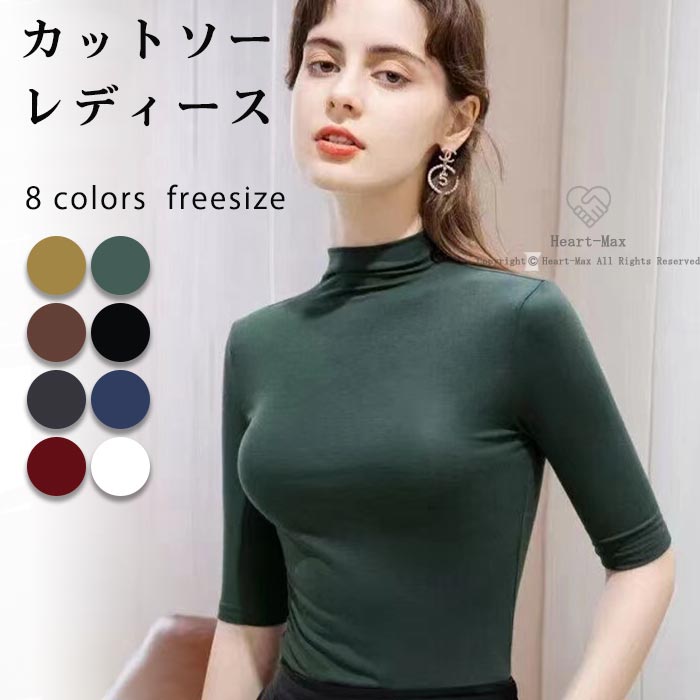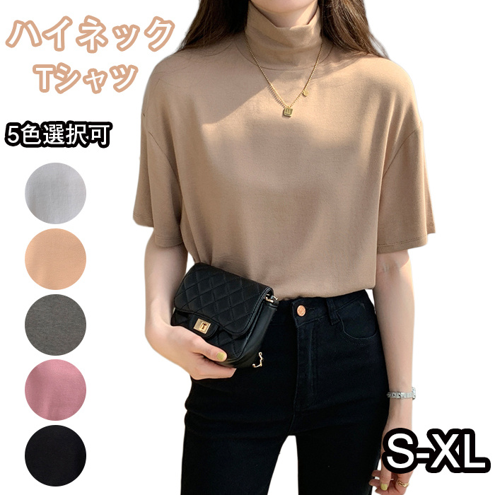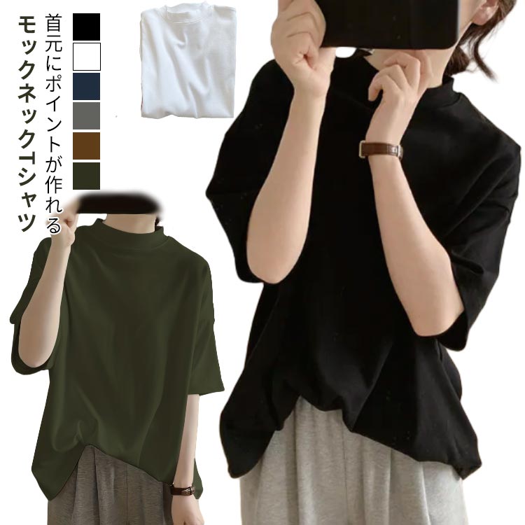Tシャツ 綿 レディース 半袖 春夏 女性用 プチハイネック トップス カットソーレディースファッション トップス Tシャツ カットソー