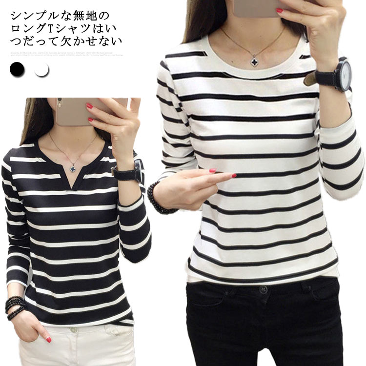 カットソー Tシャツ レディース シャツ 長袖 トップス クルーネック vネック ヘンリーネック ストライプ