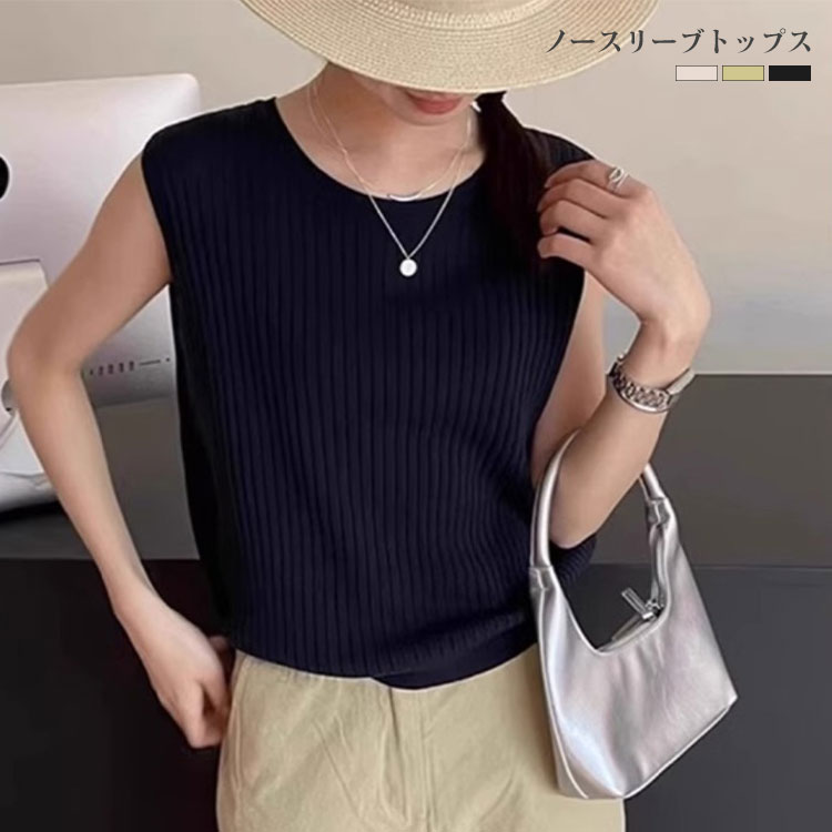 Tシャツ ロングtシャツ レディース 丸首 レディース 無地 キャミソール 丸首 ノースリーブトップス サマーニット ニット 春ニット タンクトップ レディースサマーニットタンクトップ トップス シン