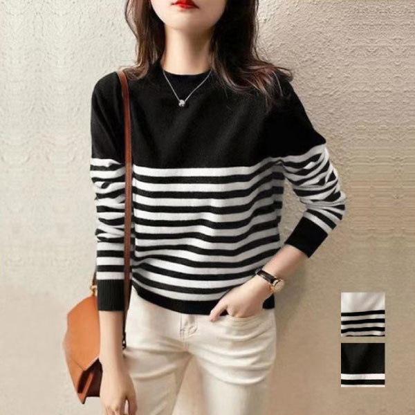 ボーダー柄 ニットセータ ラウンドネック ニットトップス レディース 着回しニット 通勤通学 普段着 ニットプルオーバー ニットソー ベーシック ニットウエア韓国