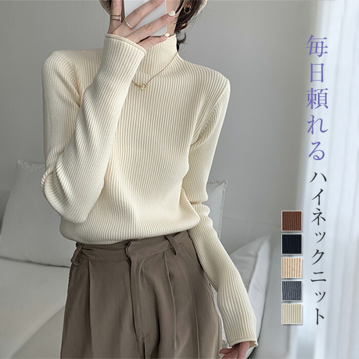 カットソー ニット レディース タイト トップス ハイネック インナー トップス カットソー ベーシック 長袖 リブ 柔らかい 着痩せ 女性らしい 暖かい 上品 大人 春 秋 長袖 通勤 普段着