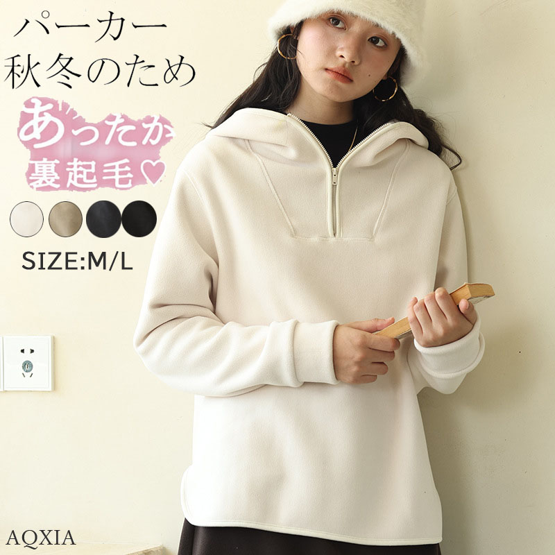 トップス パーカー レディース 上品 高見え 暖かい 長袖 裏起毛 厚手 体型カバー 着痩せ 無地 帽子付き シンプル 秋冬 4色展開 おしゃれ 通勤 ゆったり 大人 きれいめ オフィス カジュアル