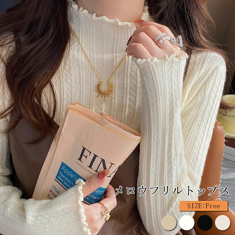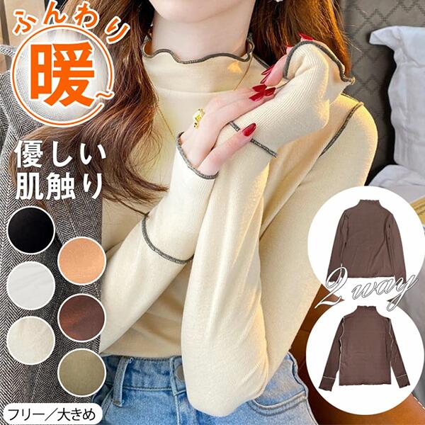 伸縮性と保温性に優れた、ふわもち起毛トップス メロウフリルがスタイリングに華を添え、幅広いテイストのアイテムと好相性