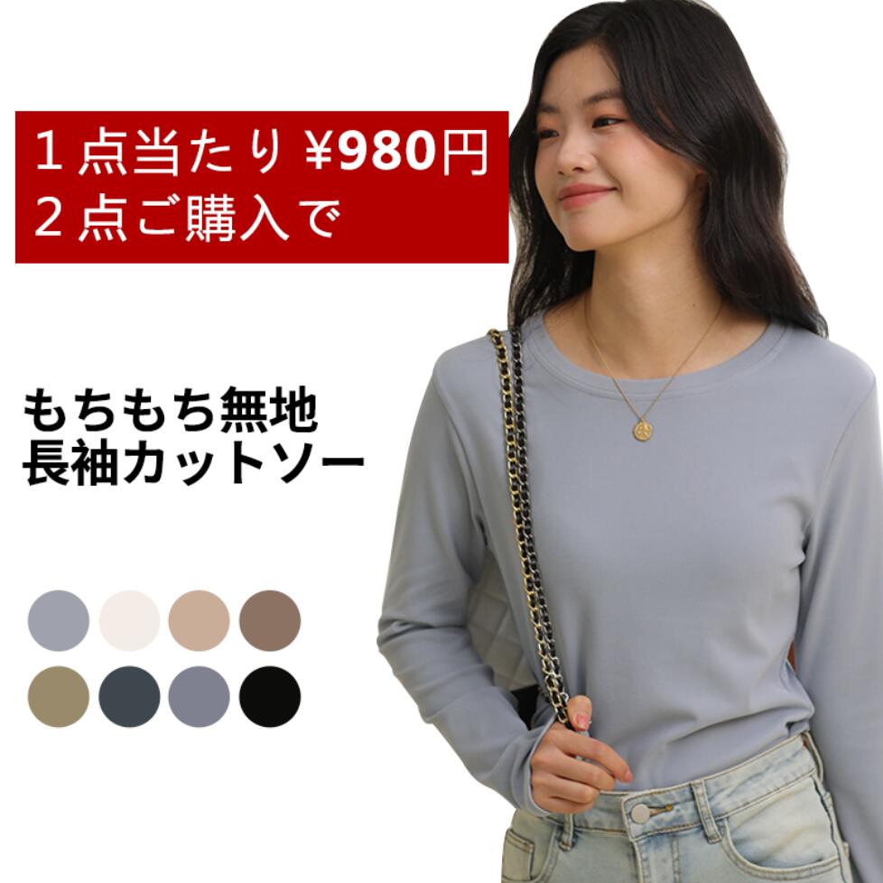 重ね着に最適 ラウンドネック長袖トップス 1枚で決まる 秋 選べる2タイプ&8カラー お仕事コーデにも普段着でも使える 大人気長袖トップス ロングスリーブ リブカットソー 細見え