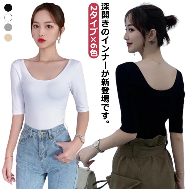 深開き インナー 七分 長袖 深開き 背中あき インナーシャツ 深開き 保温 春秋 春用 夏 夏用 カットソー