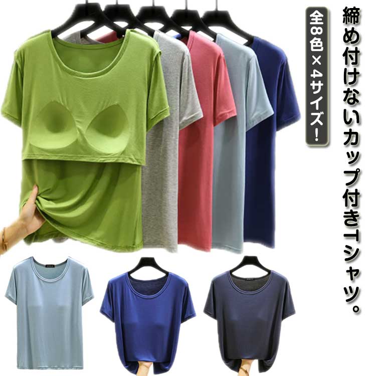 カップインTシャツ Tシャツ 半袖 カップ付き カップ付き カップ付きインナー ルームウェア 春 夏 柔らかい シンプル カップインTシャツ