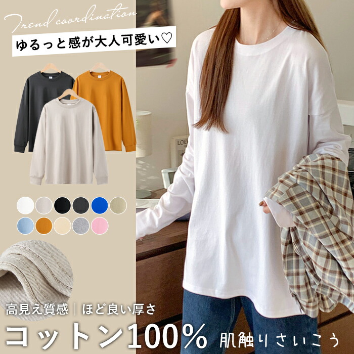 シャツ レディース 長袖 カットソー おしゃれ ロゴ オーバーサイズ 大きいサイズ ゆったりシャツ 韓国 ロン 体型カバー