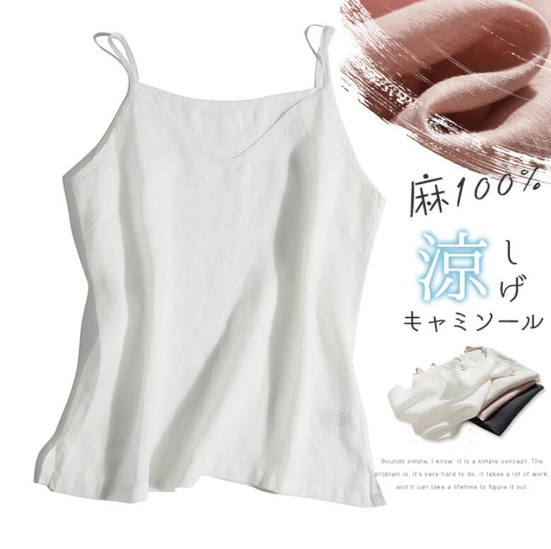 リネン100%キャミソール レディース トップス ノースリーブ 麻 春 夏 涼しいレディースファッション トップス シャツ カットソー