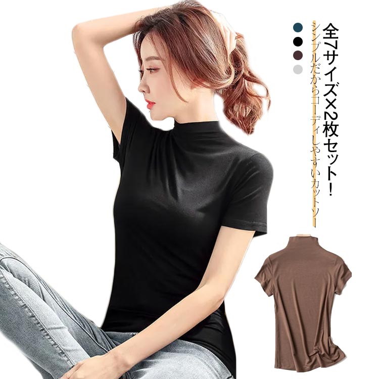 ハイネック 2枚セット 半袖 カットソー 薄手 重ね着 紫外線カット ~5レディースファッション トップス シャツ カットソー