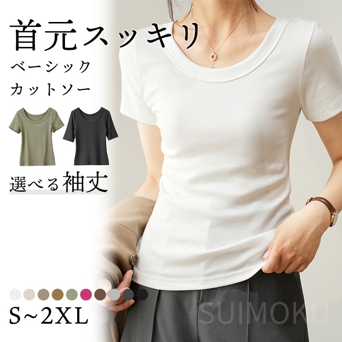 新色 スイモク 半袖 Tシャツ レディース トップス カットソー リブ デイリー 肌触りの良い素材 大きいサイズ きれいめ 夏 ナチュラル おしゃれ 透けにくい 透けない オフィス スーツ シンプル