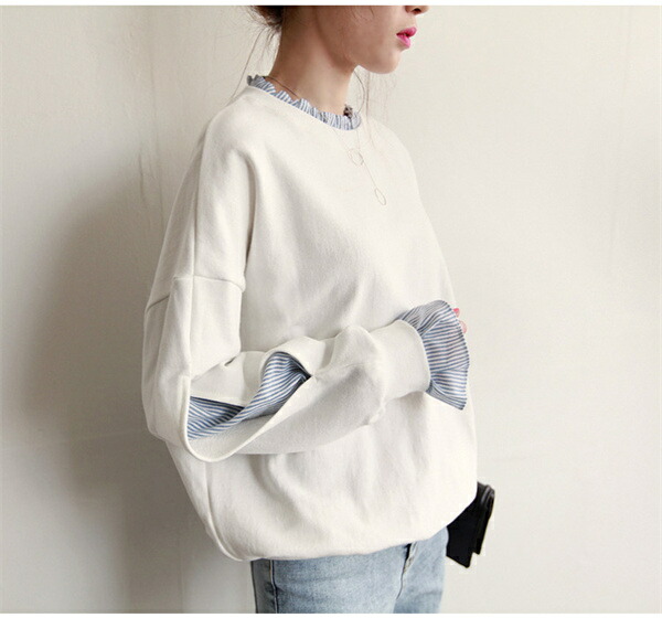 トップス レディース 重ね着風 長袖 スウェットトレーナー パーカー カジュアル 可愛い ストライプ 着痩せ 普段着 春 秋 -2 韓国ファッション 上着