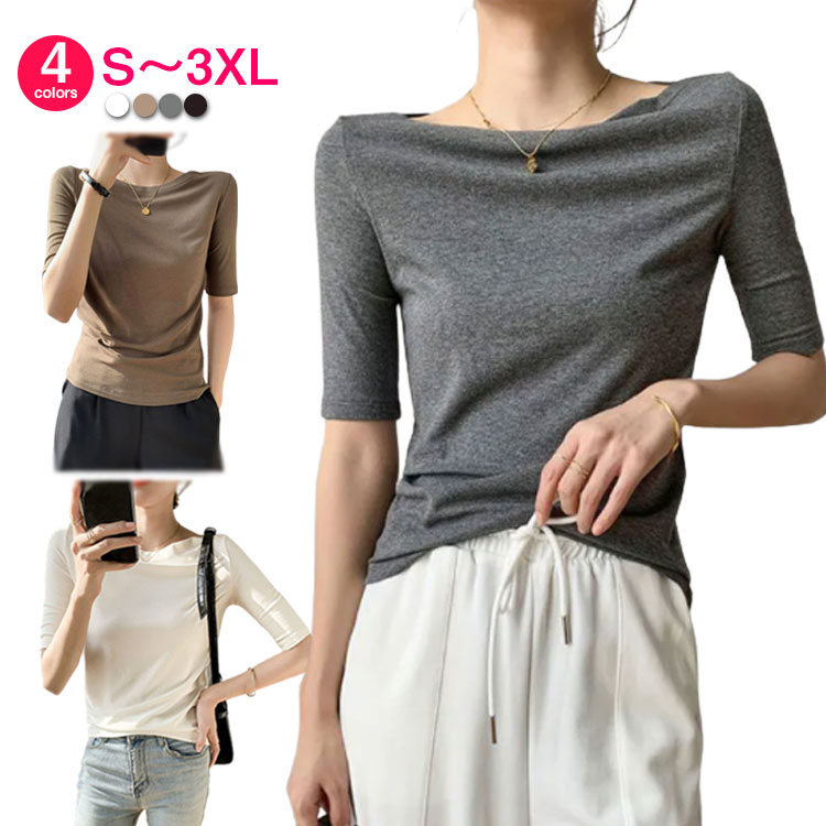 五分袖ボートネック チュニック Tシャツ レディース 事務服 全4色レディースファッション トップス Tシャツ カットソー