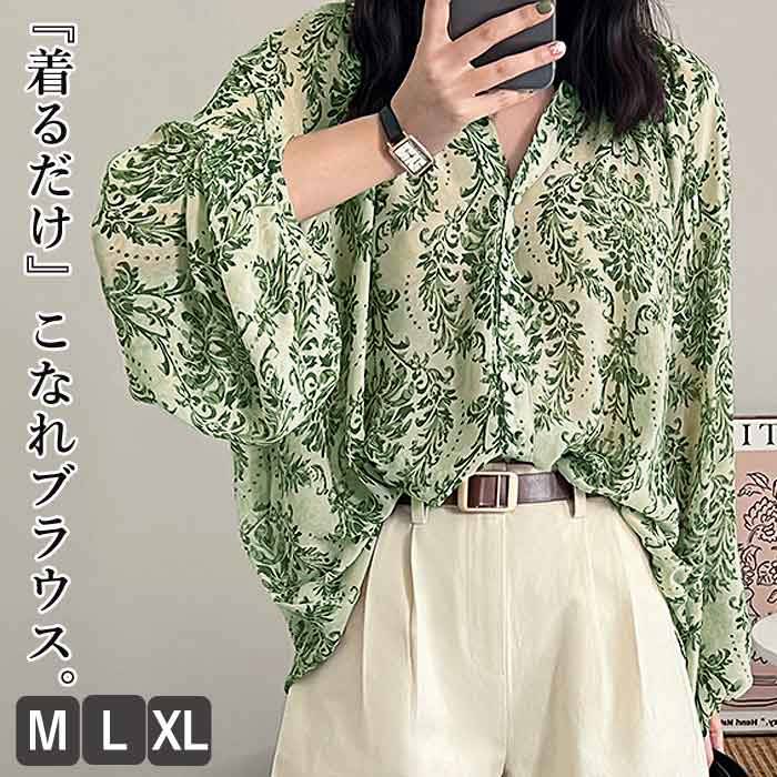 ブラウス レディース シャツ シアー 透け感 柄シャツ 春ブラウス カットソー トップス 韓国 春[郵2]^1043^
