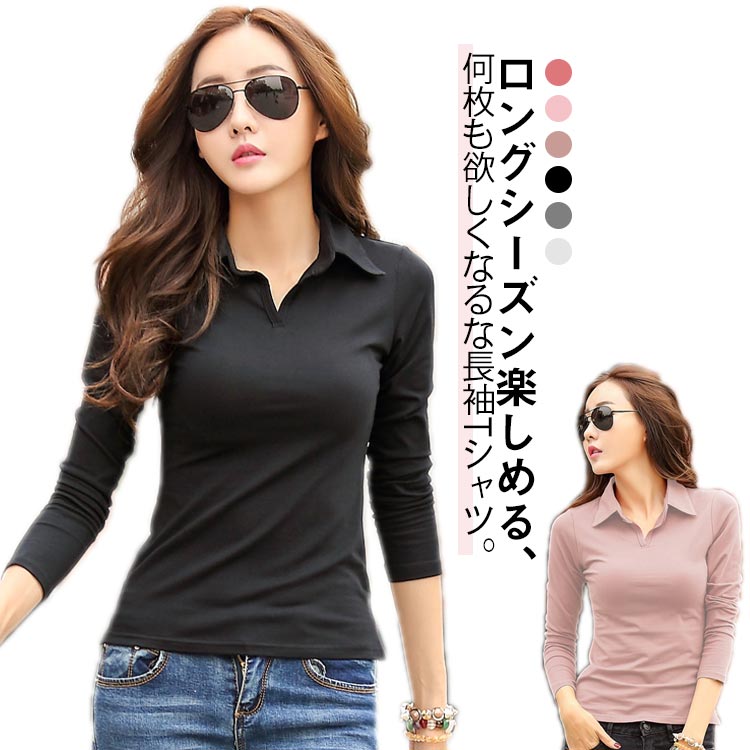 シャツ レディース 長袖 ポロシャツ カットソー ポロシャツ 春 秋 冬 カットソー ネックレディースファッション トップス シャツ カットソー