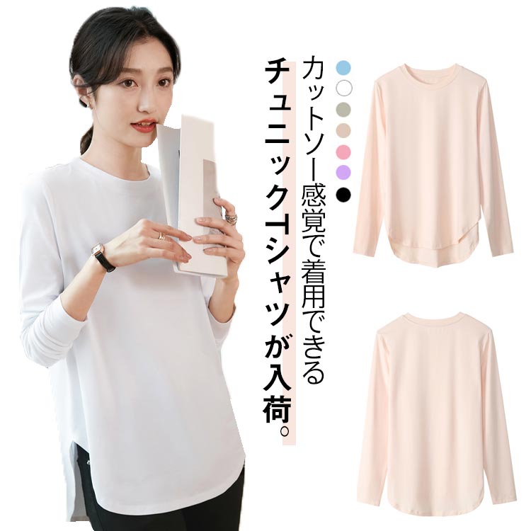 カットソー シャツ レディース 春夏秋 薄手 長袖 トップス インナー ラウンドカットレディースファッション トップス シャツ カットソー