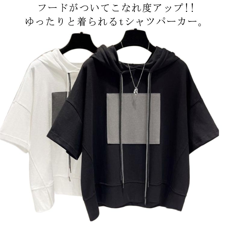 夏 薄手 パーカー風tシャツ 半袖tシャツ フードtシャツ ゆったり 半袖パーカーレディースファッション トップス Tシャツ カットソー