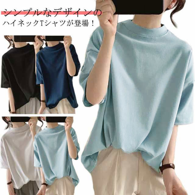ハイネック レディース Tシャツ 半袖 無地 ハイネックTシャツ 半袖Tシャツ トップス プルオーバー お洒落 カジュアル 大人