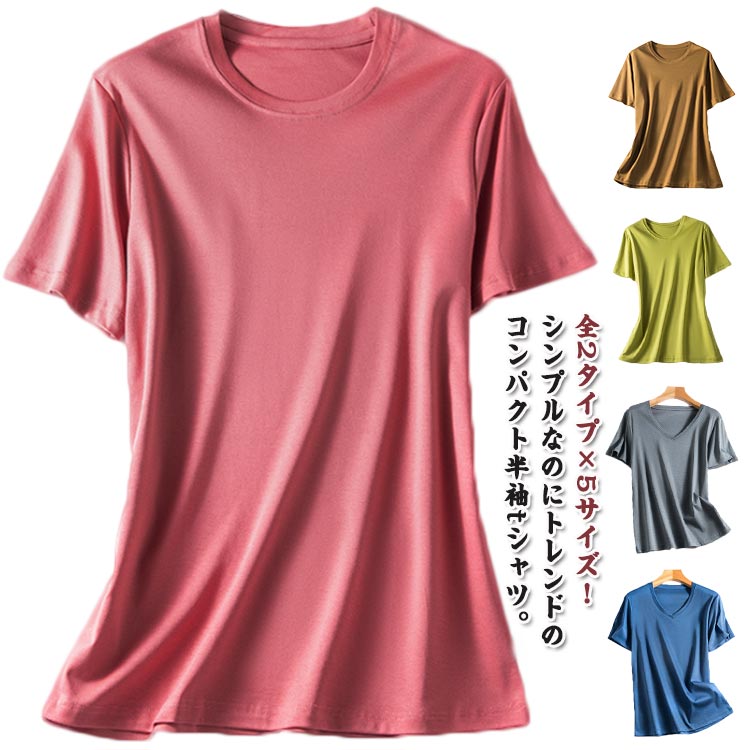 接触冷感 Tシャツ レディース 半袖 無地 シンプル かわいい ひんやり 夏 暑さ対策 きれいめ カジュアル 夏 クルーネック vネック