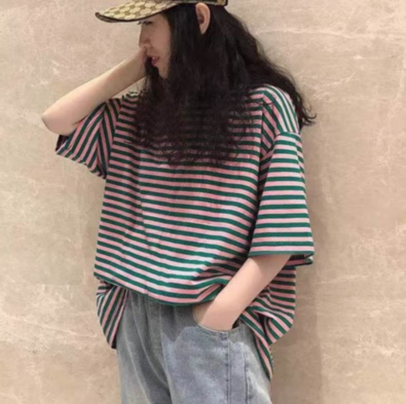 レディース トップス カットソー シャツ 半袖 ボーダー ゆったり ゆる オーバーサイズ ドロップショルダー メンズライク ボーイッシュ 大人可愛い カジュアル おしゃれ かっこいい