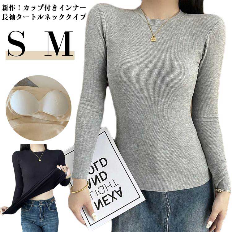 カップ付き 長袖 タートルネック トップス レディース カップ付き インナー 大きいサイズ 下着 速乾 ストレッチ 肌着 ナイトウェア ルームウエア