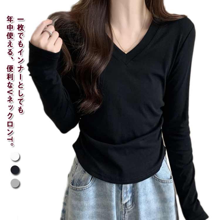 長袖 tシャツ カットソー Vネック スリム フィット 長袖インナー ロンt ロングtシャツ インナーシャツ