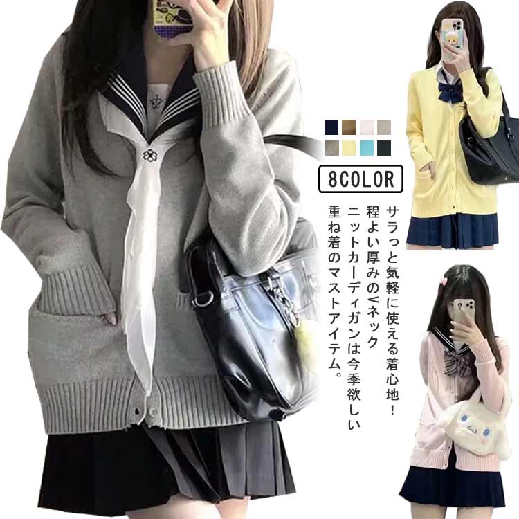 スクールカーディガン ゆったり 高校生 Vネック 制服 カーディガン 女子高生 通学 学生 中学 学生服 ニット 卒業式 女子高生制服 JK制服