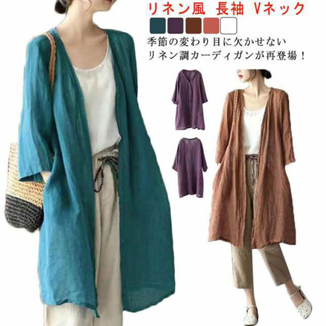 カーディガン 夏 リネン風 ロング丈 カーディガン 羽織り 涼しい コンパクトレディースファッション トップス カーディガン ボレロ