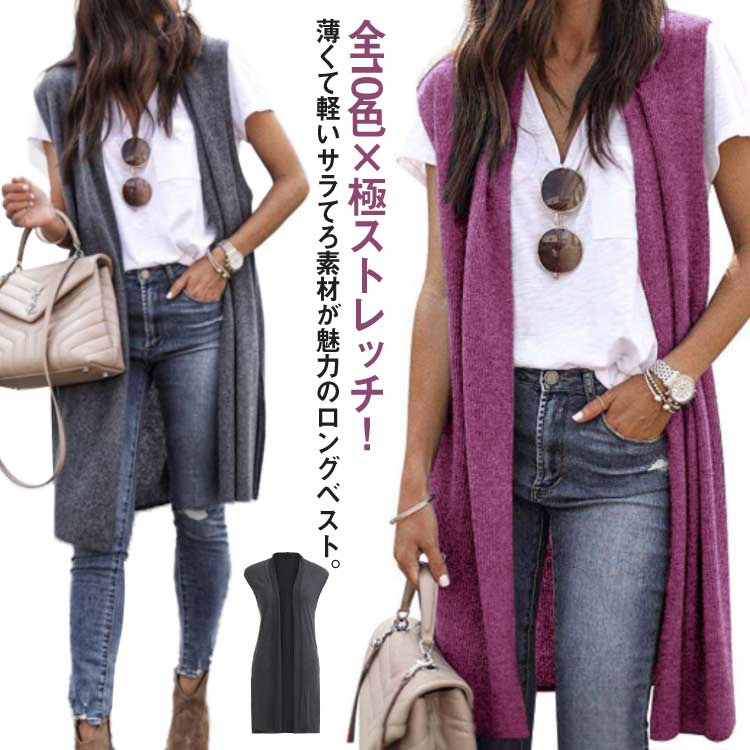 ベスト ジレ ロング丈 羽織り ロングジレ レディース スリット 薄手 夏 秋レディースファッション トップス カーディガン ボレロ