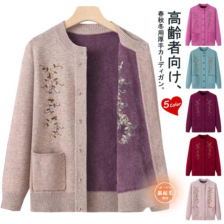 ニットカーディガン シニアファッション 暖かい レディース 秋冬 セーター ニット 花柄 前開きボタン 春 秋 冬