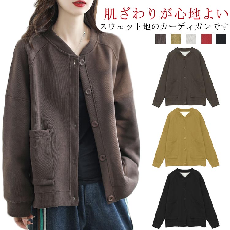 トップス カーディガン スウェット 綿 無地 ネック トレーナー レディース ビッグシルエットレディースファッション トップス カーディガン ボレロ