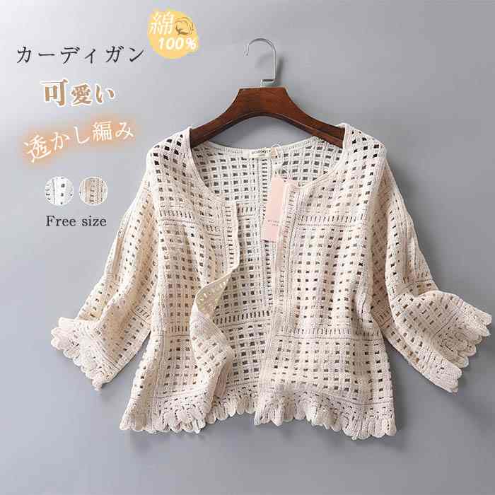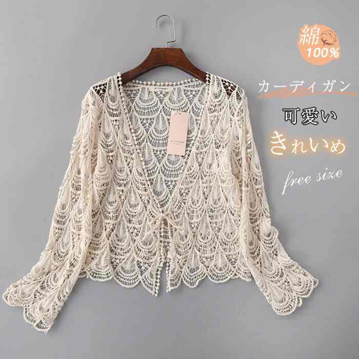 綿100% カーディガン レディース 薄手 夏 透かし編み 可愛い レース カーディガン 薄手 レディース ショート丈 春 夏 きれいめ コットン 羽織り