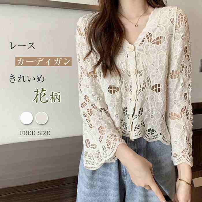 カーディガン 薄手 レディース 夏 長袖 透け感 花柄 レース カーディガン レディース 透かし編み 春 夏 可愛い 前開き ショート丈 羽織り