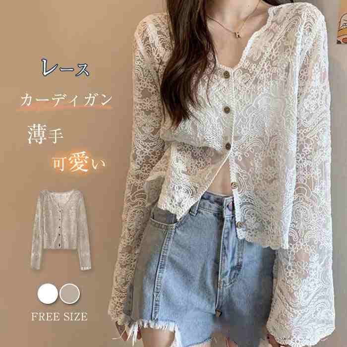 カーディガン レディース 薄手 夏 長袖 レース カーディガン 透け感 レディース 春 夏 可愛い 前開き ショート丈 羽織り