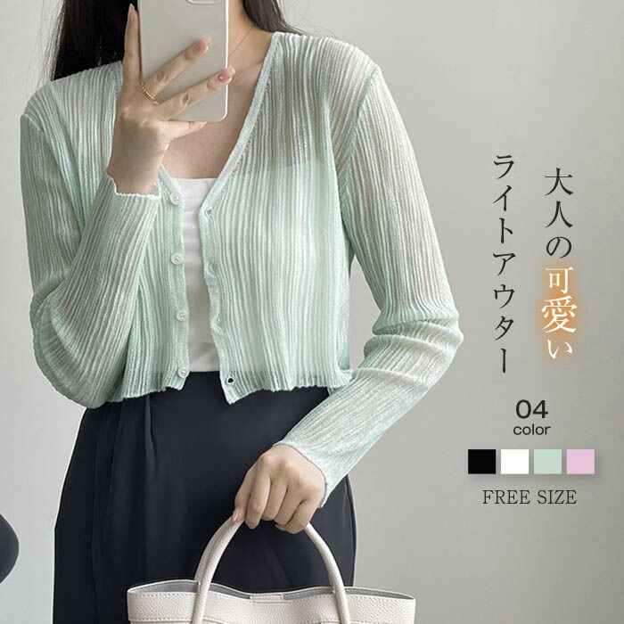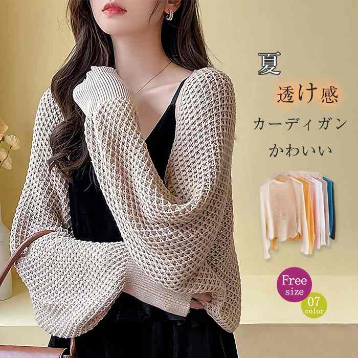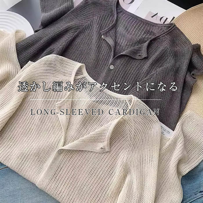 カーディガン レディース 春夏 ショート丈 透かし編み 長袖 無地 羽織り はおり シンプル ナチュラル トップス UVカット UV対策 日焼け対策 紫外線対策 20代 30代 40代 50代