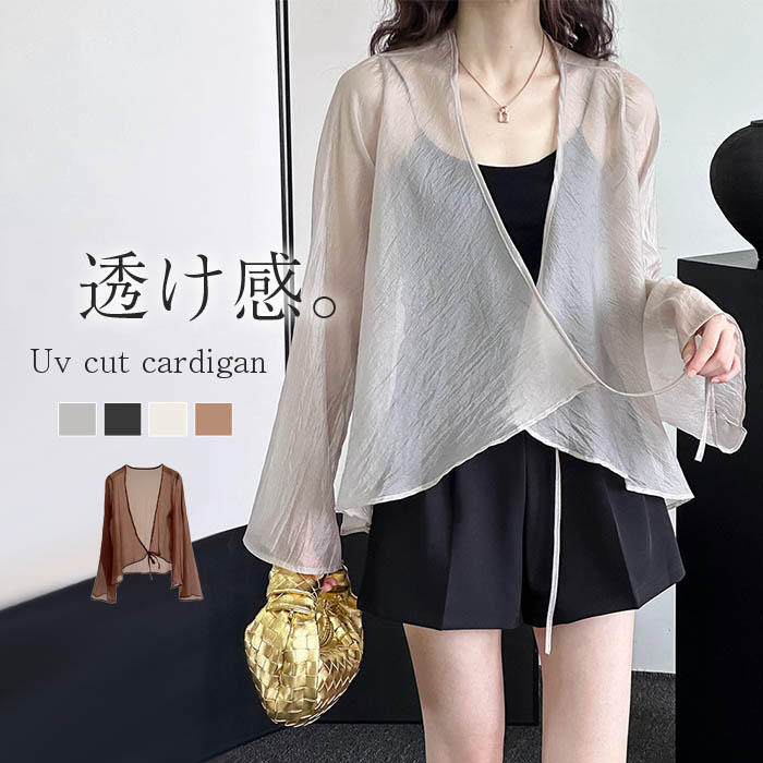 シアー カーディガン 薄手 カーディガン UV カーディガン レディース 夏 春夏 ゆったり 長袖 無地 羽織り シンプル ノーボタン リボン ナチュラル トップス 体型カバー UVカット