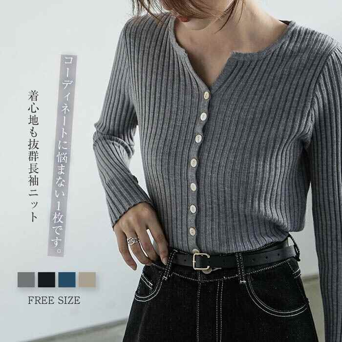カットソー 長袖 レディース きれいめ 冬 春 秋 薄手 インナートップス ニットセーター レディース リブニット インナー ニット カーディガン おしゃれ 黒 ブラック