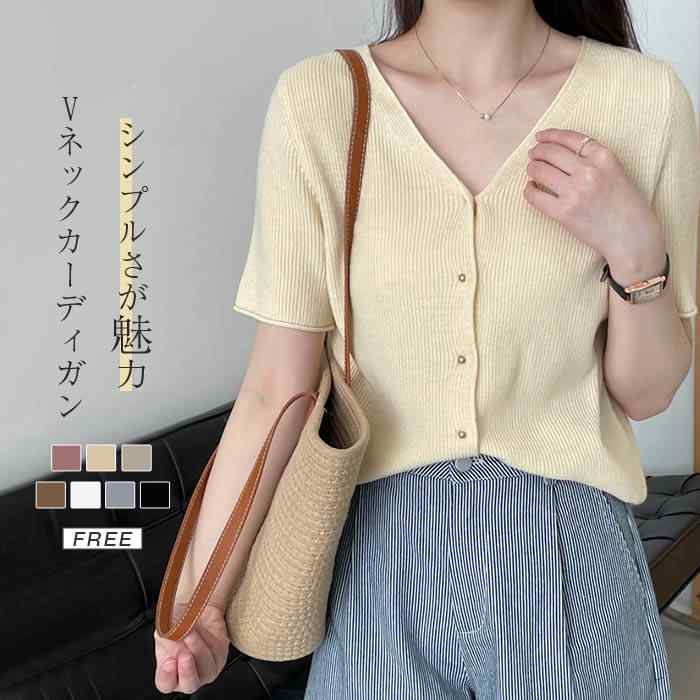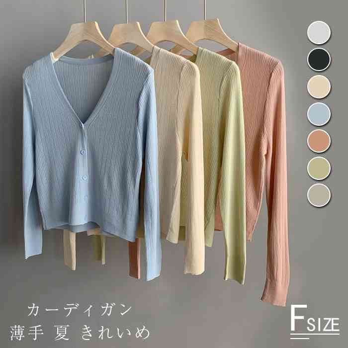 サマーニット カーディガン レディース 春夏 ベーシック ニット カーディガン 薄手 きれいめ ショート vネック 春 夏 トップス 透かし編み 春ニット